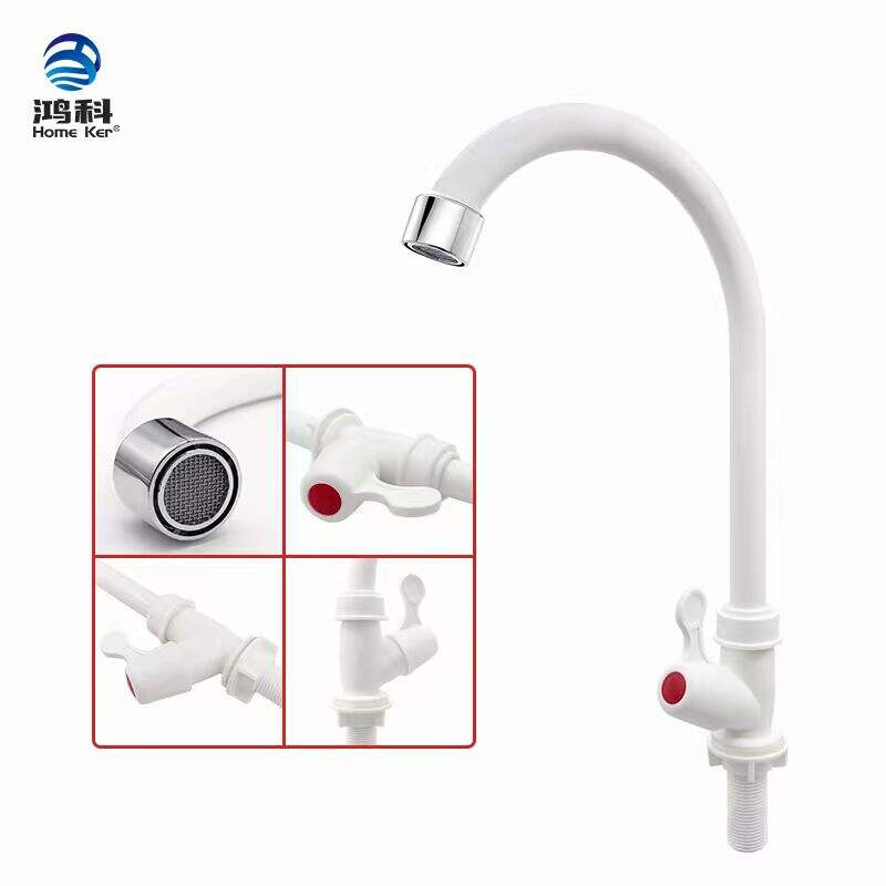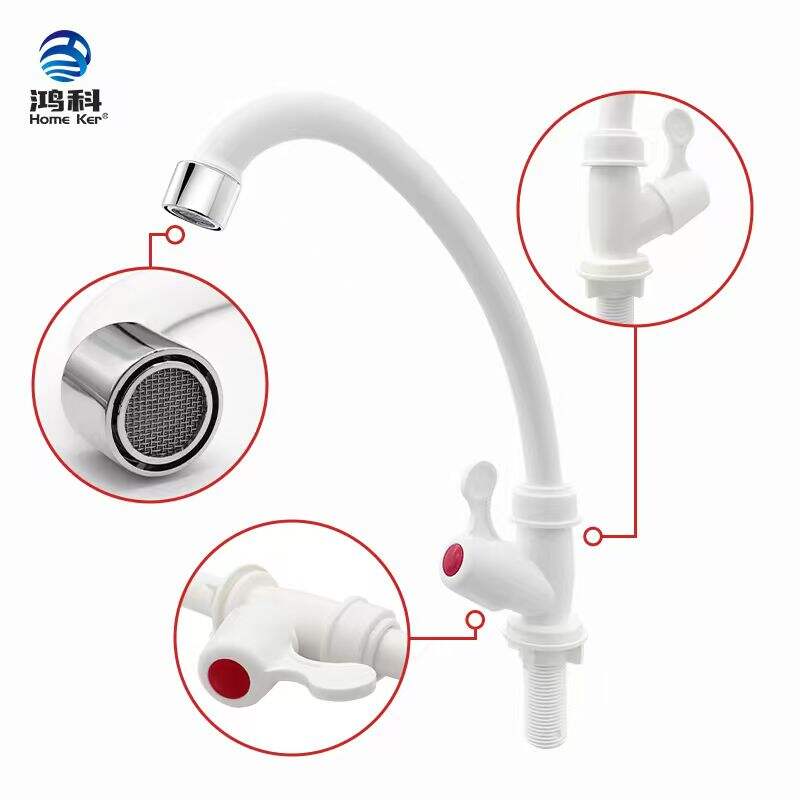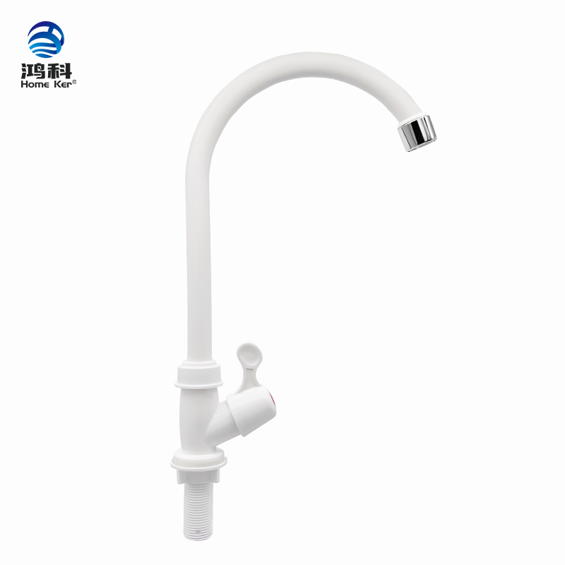 شیر دستشویی با قیمت کارخانه در فروش گرم ABS، شیر دیواری هفت منحنی رنگ سفید برای آشپزخانه